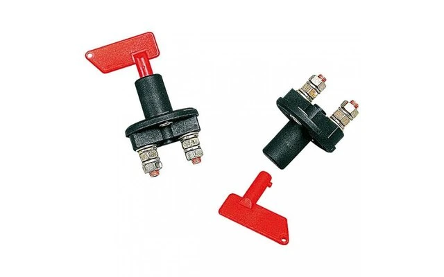 Batterie Trennschalter 12/24 V für Kfz Mit abnehmbarem Schlüssel. Unterbricht den Stromkreis und vermindert somit das Risiko von Brandgefahr. Außerdem gute Diebstahlsicherung. Belastbar bis 500 A.