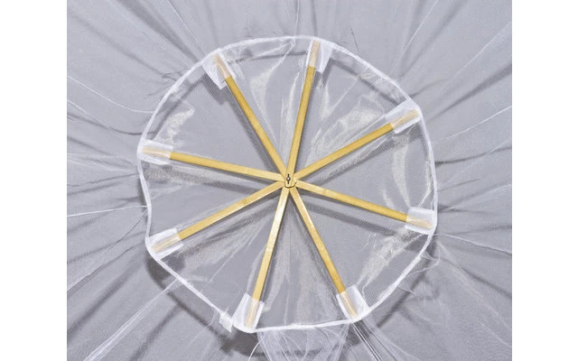 Ideal für den Einsatz beim Camping, Trekking und anderen Reisen. Schützt vor Insekten und Spinnen. Geeignet für alle Bettgrößen bis max. 200 x 220 cm. Holzspinne mit Punktbefestigung. Netz in Pyramidenform. In zwei Ausführungen erhältlich: